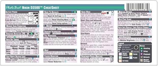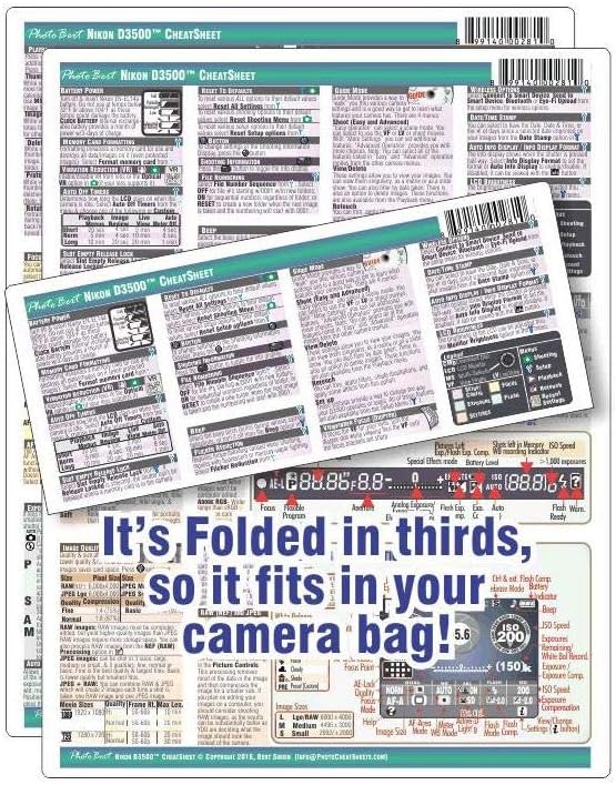 Nikon D3500 Digital SLR Camera CHEATSHEET short version laminated instruction manual Pamphlet January 1 2018.