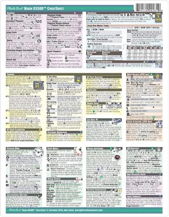 Light Falloff Cheat Sheet Card. Nikon D3500 Digital SLR Camera CHEATSHEET short version laminated instruction manual Pamphlet January 1 2018. To adjust aperture or shutter speed for varying conditions apply exposure reciprocity.